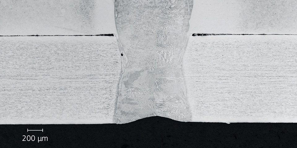 Im Rahmen des AiF-Forschungsvorhabens FAAM, gefördert durch die FOSTA – Forschungsvereinigung Stahlanwendungen e.V, nahmen Experten aus Industrie und Forschung den aktuellen Stand in puncto Werkstoffe unter die Lupe: Auf der Online-Abschlusskonferenz im Sommer 2020 ging es unter anderem um neue Leichtbaulösungen, Fügetechnik und Stirnflächennähte für martensitische Chromstähle. Eine sehr wichtige Rolle spielt die Lasertechnik. Im Detail untersuchten die Aachener die Eignung zum Schweißen eines pressgehärteten Chromstahl mit martensitischem Gefüge X46Cr13 (1.4034) in artgleichen und artungleichen Verbindungen für die Montage. Dieser gilt aufgrund seines hohen Kohlenstoffgehalts als schwer schweißbar. Bei den artungleichen Verbindungen handelte es sich um Kombinationen mit kaltverfestigtem Hochmanganstahl (1.4678), pressgehärtetem Martensit (1.5528), hochfestem Dualphasenstahl (1.0944) und kaltgewalztem Feinkornbaustahl (1.0984). Martin Dahmen, Gruppe Makrofügen und Schneiden am Fraunhofer ILT: „Dabei lag das Hauptaugenmerk auf der Durchmischung der unterschiedlichen Werkstoffe, der Metallurgie und auf den daraus resultierenden Eigenschaftsprofilen.“