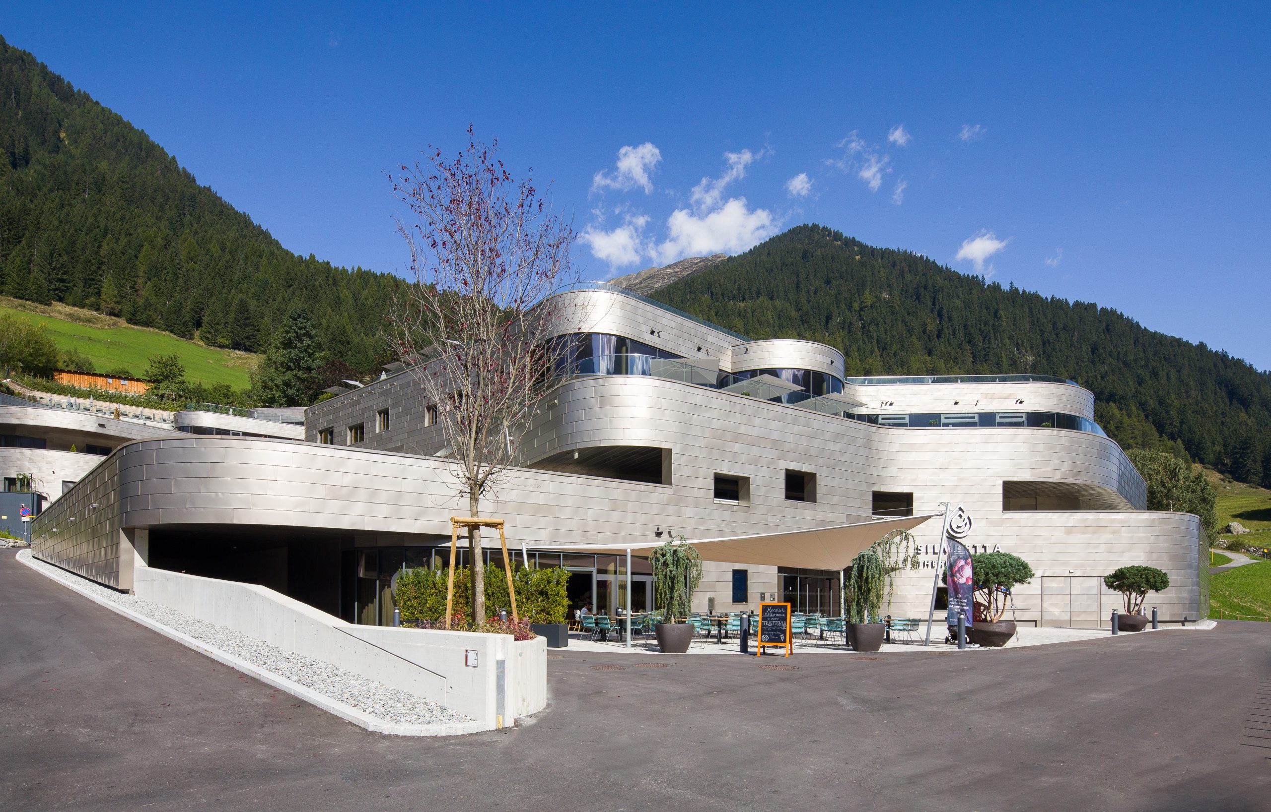In Ischgl liegt eine Therme, die leise wirkt und sich harmonisch in die Landschaft fügt. Die Silvretta Therme scheint fast über den Bergen zu schweben. Ihre Fassade aus HFX Edelstahl zeigt einen sanften Champagnerton, das Licht streut weich, nichts flirrt, nichts blendet. Eine Architektur, die Ruhe ausstrahlt und zugleich technisch anspruchsvoll ist.